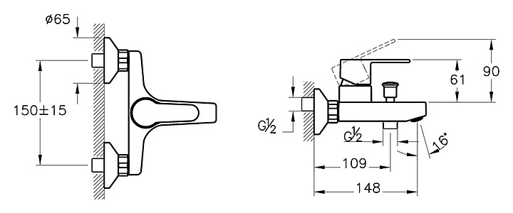 Смеситель для ванны Vitra Win S A42676EXP