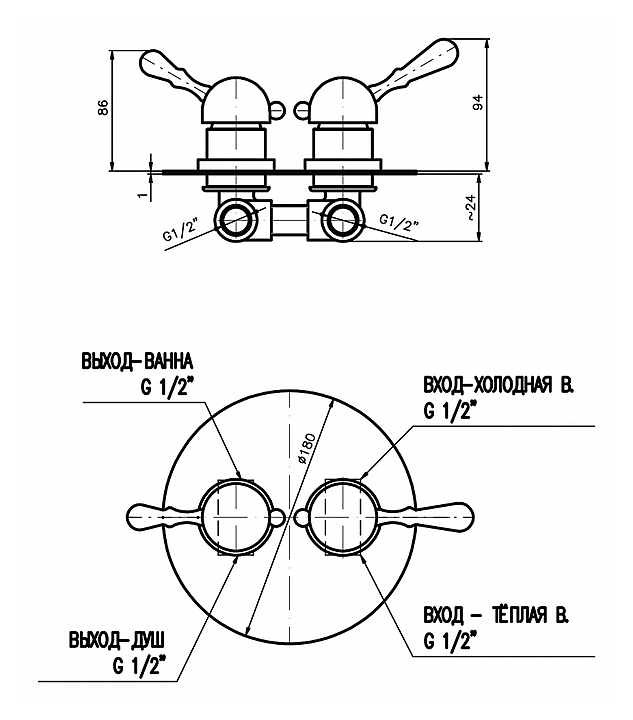 Смеситель для ванны и душа встраиваемый RAV-SLEZAK LABE L086SM