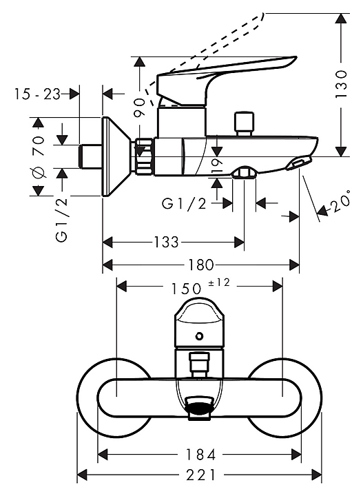 Смеситель для ванны Hansgrohe Novus Loop 71340000
