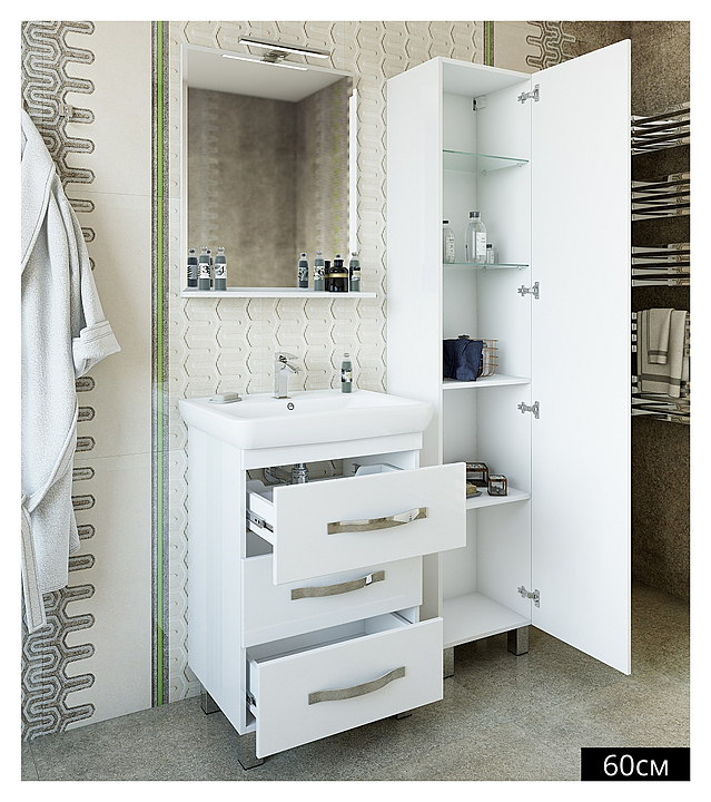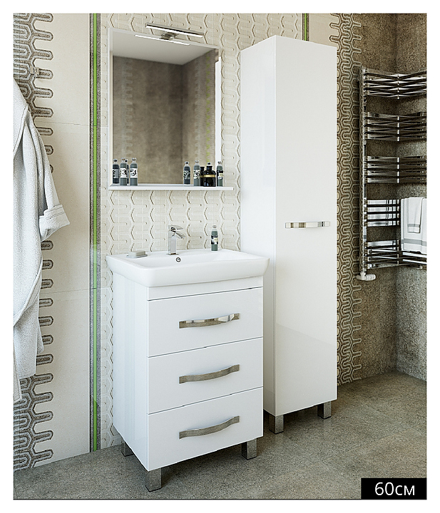 Тумба Sanflor Одри выполнена в классическом стиле. Благодаря простоте форм и минимализму мебель станет украшением любой ванной комнаты. Тумба оснащена 3 выдвижными ящиками, раковина имеет слив-перелив и одно отверстие для смесителя, расположенное по центру. Корпус мебели выполнен из влагостойкой ЛДСП с эмалевым покрытием. В комплект поставки входит раковина Santek Тигода 60. Тумба является частью гарнитура для ванной комнаты Одри. Особенности: