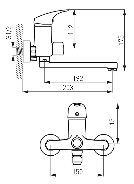Смеситель для ванны настенный с гарнитуром FERRO FERRO ONE BFO33A хром