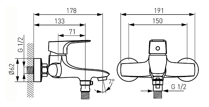 Смеситель для ванны настенный FERRO TIGA BTG1VL хром