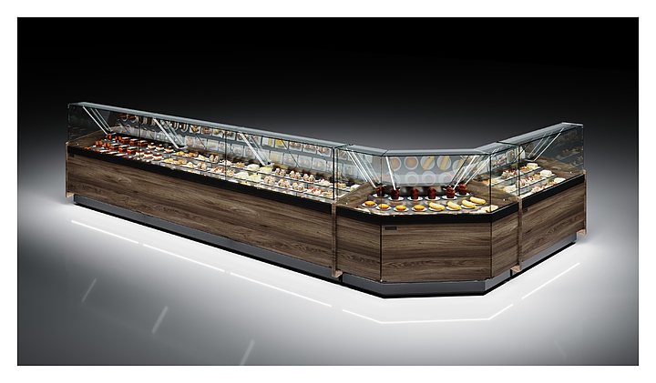 Тепловая кондитерская витрина Carboma КС80 SH 1,0-1 BORNEO 2 используется на предприятиях общественного питания и торговли для поддержания в горячем состоянии, кратковременного хранения, демонстрации и продажи различных закусок и блюд, пиццы и выпечки. Зона выкладки и столешница выполнены из шлифованной нержавеющей стали, внешние панели – из ламинированной древесноволокнистой плиты средней плотности (МДФ), нижняя облицовка и профиль под стекло – из стали с покрытием черной краской (RAL 9005), верхние стойки – из легкого полиметилметакрилата (ПММА) высокой степени прозрачности, термоизоляция – из пенополиуретана. Боковины не входят в комлект поставки и приобретаются отдельно. Особенности: