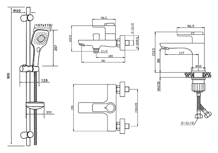 Комплект смесителей с душевым гарнитуром ORANGE Thermo T19-311cr хром