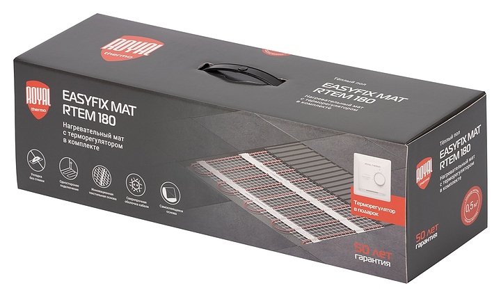 Комплект теплого пола Royal Thermo EasyFix Mat RTEM 2-180-8 предназначен для организации системы теплого пола и комфортного обогрева жилых, административных, служебных или производственных помещений. Система теплого пола при верном инженерном расчете обеспечивает равномерный нагрев воздуха путем теплопередачи и естественной конвекции без создания сквозняков и резких колебаний относительной влажности. Нагревательный мат оснащен тонким двухжильным кабелем овального сечения, надежно зафиксированным в полотне на инновационной текстильной основе. Корпус терморегулятора квадратной формы выполнен из белого пластика.