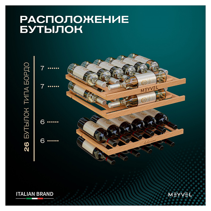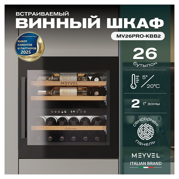 Винный шкаф MEYVEL MV26PRO-KBB2 69 л 592х572х596 мм сталь, черный