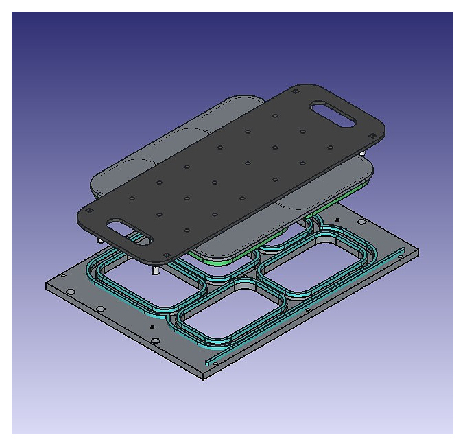 Форма VASSILII № 4111 используется совместно с запайщиком лотков 360 на предприятиях общественного питания и торговли для запайки полипропиленовых контейнеров прямоугольной формы. Модель оснащена контурной обрезкой и способна запаивать 5 лотков одновременно. Форма состоит из 2 частей: нижней для запаивания лотка с пазами под верхнюю часть, верхняя с ножками -для вырубки по контуру. Характеристики: