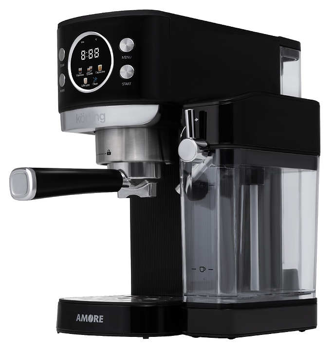 Кофеварка Korting KCM 1007 T Amore используется в домашних условиях и в небольших офисах для приготовления молотого кофе. Модель оснащена цветным дисплеем, кнопочным управлением, резервуаром для молока и полностью автоматической системой взбивания молочной пенки с регулировкой. Корпус и платформа для подогрева чашек выполнены из высококачественной нержавеющей стали, рожок - из металла. В комплект поставки входят кофеварка в сборе, резервуар для молока, фильтр на одну и две порции кофе, рожок и мерная ложка. Особенности: