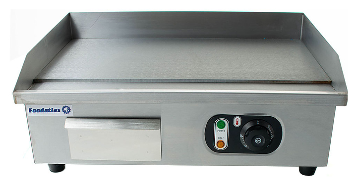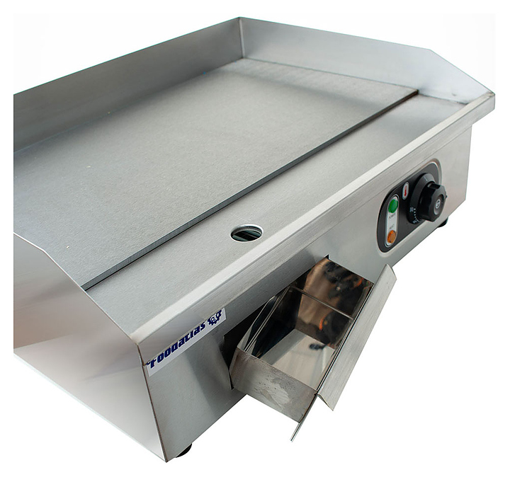 Жарочная поверхность Foodatlas HEG-818A предназначена для контактной жарки мяса, птицы, рыбы и овощей на предприятиях общественного питания и торговли. Модель оснащена жарочной поверхностью с бортиками, регулятором терпературы, предохранителем, индикаторами сети и нагрева и 4 ножками. Корпус выполнен из нержавеющей стали 430, ножки - из пластика. Особенности: