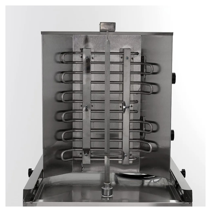 Гриль для шаурмы Foodatlas CY-E2 Eco предназначен для приготовления свинины, говядины, баранины и куриного мяса на гриле. Такой тип запекания подходит для закусочных, заведений общественного питания и торговых точек с наличием собственной кулинарии. Аппарат можно устанавливать в парках, развлекательных точках, кинотеатрах, на открытых площадках с большой проходимостью. Модель оснащена поддоном для сбора масла, 3 нагревательными элементами и 2 регуляторами температуры. Корпус изготовлен из нержавеющей стали. Особенности: