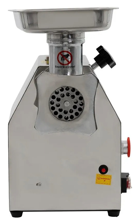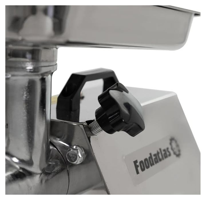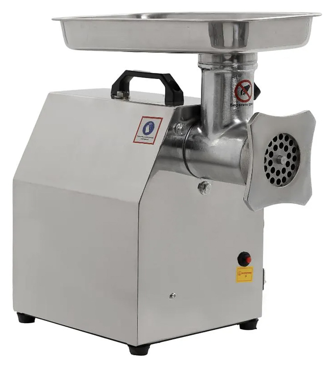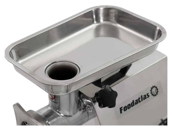 Настольная мясорубка Foodatlas FA-12 используется на предприятиях мясоперерабатывающей промышленности, общественного питания и торговли и для измельчения филе мяса и рыбы при производстве фарша. Модель оснащена электродвигателем и панелью управления с электромагнитными функциональными кнопками. Корпус, загрузочный лоток и ограничитель толкателя выполнены из нержавеющей стали, нож – из стали марки 420, насадка для колбас – из пластика, упаковка – картонная коробка. Комплектация: