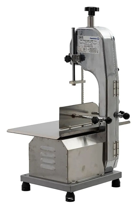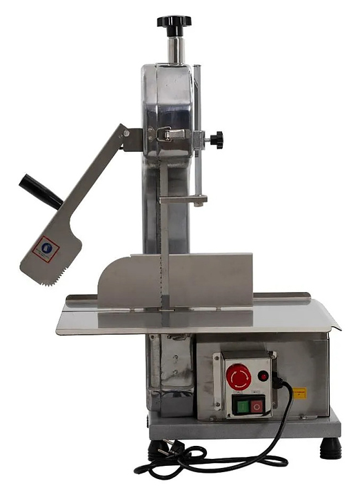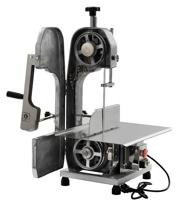 Настольная ленточная пила Foodatlas FA-130B предназначена для нарезки на порционные куски свежих и замороженных мясных продуктов, птицы и рыбы, в том числе с костями, на предприятиях мясоперерабатывающей промышленности, общественного питания и торговли. Модель оснащена электродвигателем, рабочим столом с системой ограничителей для регулировки размеров нарезки и толкателем для безопасного перемещения продукта к пильному полотну. Корпус выполнен из алюминия с полированной поверхностью, рабочая поверхность, ограничители и толкатель – из нержавеющей стали, упаковка – фанерный ящик. Особенности: