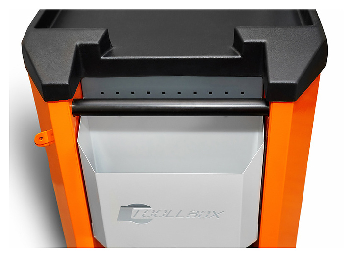 Инструментальная тележка КМК ЗАВОД TTOOLLBOX Premium TBS-8 предназначена для хранения и перемещения инструментов, материалов и оснастки в мастерских, гаражах, профессиональных автосервисах и помещениях производственного назначения. Модель оснащена 4 ящиками с телескопическими направляющими, 4 колесами с резиновым ободом (два колеса неповоротные, два поворотные, одно из которых оснащено тормозом), широкой боковой ручкой для перемещения тележки и складным перфорированным экраном. Корпус изготовлен неразборным, сварным соединением из 1,5 мм стали и стальной профильной трубы 30х30мм. Внимание! Тележка инструментальная всех исполнений, укомплектованных выдвижными ящиками поставляется в собранном виде. Особенности: