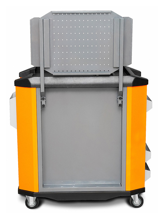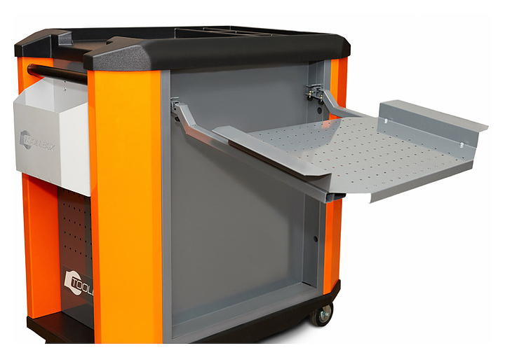 Инструментальная тележка КМК ЗАВОД TOOLLBOX Premium TBS-10 предназначена для хранения и перемещения инструментов, материалов и оснастки в мастерских, гаражах, профессиональных автосервисах и помещениях производственного назначения. Модель оснащена 4 ящиками с телескопическими направляющими, 4 колесами с резиновым ободом (два колеса неповоротные, два поворотные, одно из которых оснащено тормозом), широкой боковой ручкой для перемещения тележки и складным перфорированным экраном. Корпус изготовлен неразборным, сварным соединением из 1,5 мм стали и стальной профильной трубы 30х30мм. Внимание! Тележка инструментальная всех исполнений, укомплектованных выдвижными ящиками поставляется в собранном виде. Особенности: