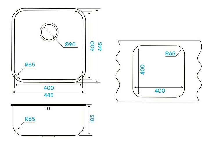 Кухонная мойка KUCHENSTERN 650SS60 RUND 45 AISI 304 445х445х185 мм нержавеющая сталь