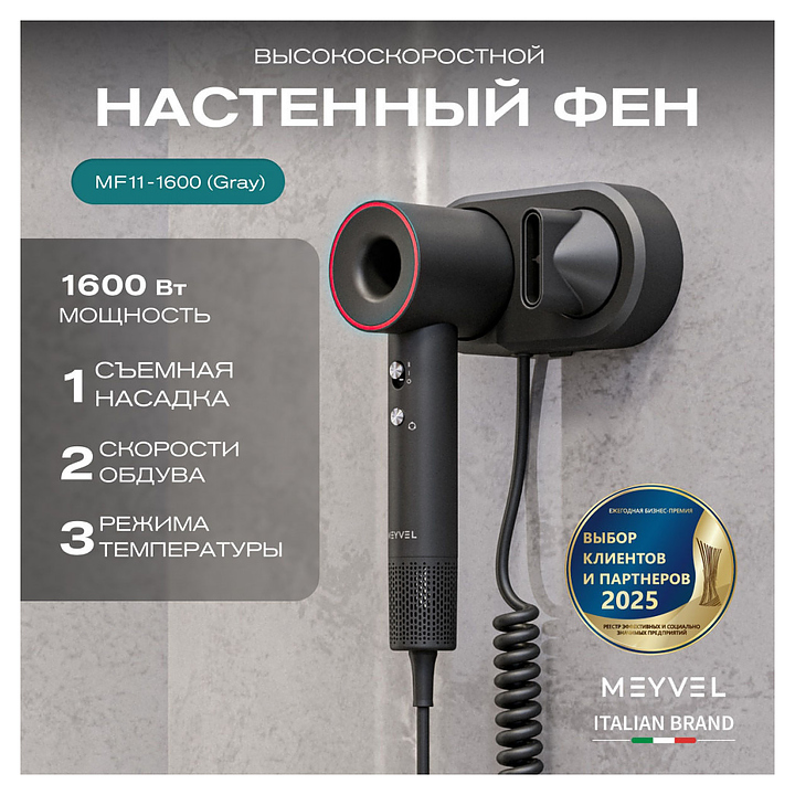 Фен настенный MEYVEL MF11-1600 (Gray) 1600 Вт серый