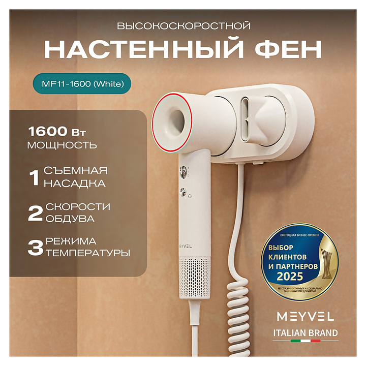 Фен настенный MEYVEL MF11-1600 (White) 1600 Вт белый
