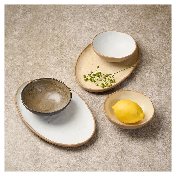 Блюдо Kunstwerk Grasp 20726/white используется для подачи различных закусок и блюд в барах, ресторанах, на других предприятиях общественного питания и в домашних условиях. Коллекция вдохновлена гармонией с природой, каждый предмет уникален благодаря элементам ручной работы, простые формы и цветовая палитра естественных землистых оттенков органично сочетаются с интерьерами различных стилей от уютного скандинавского минимализма до эклектичного бохо или ар-деко. Емкость овального сечения оснащена невысоким плавно расширенным в основании бортом. Изделие выполнено из высококачественной керамики с глазурованной поверхностью – белого цвета с внутренней стороны и бежевого оттенка с наружной.