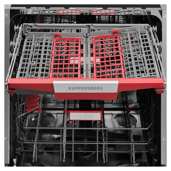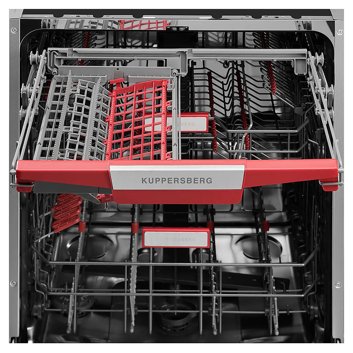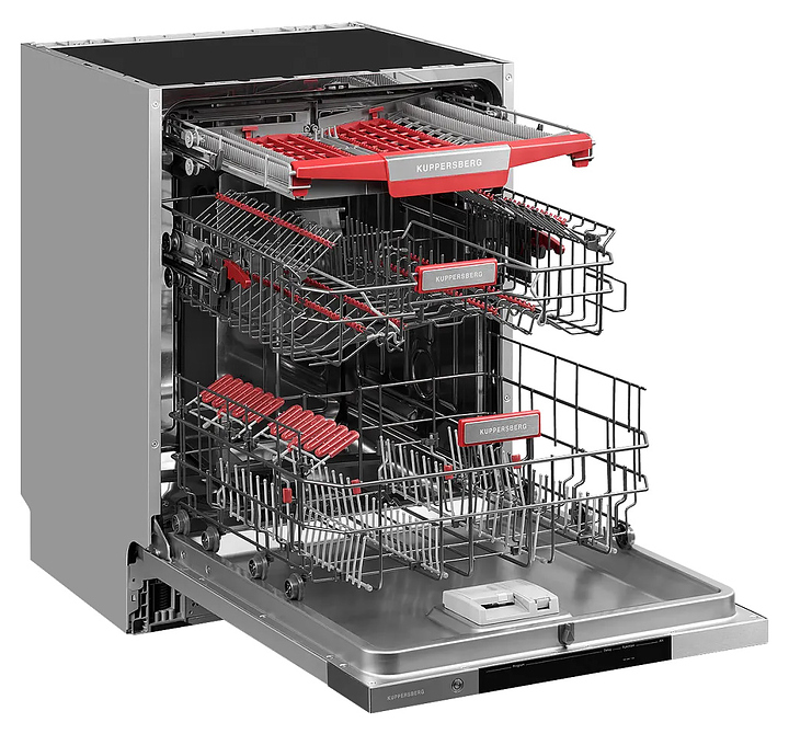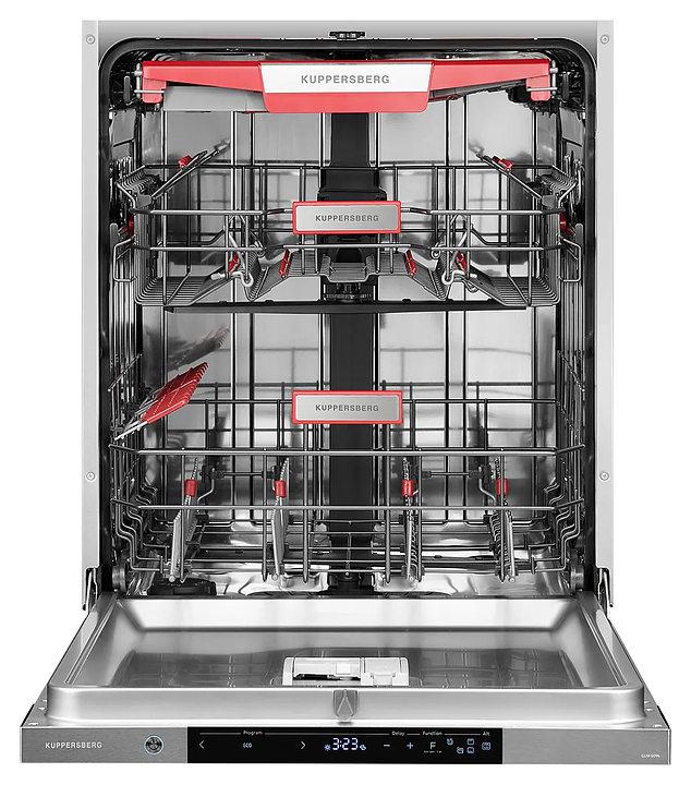 Встраиваемая посудомоечная машина Kuppersberg GLM 6096 предназначена для гигиенической обработки и последующей сушки различной посуды на предприятиях общественного питания, в гостиничных комплексах и домашних условиях. Модель оснащена камерой с откидной дверью, 3 разбрызгивателями, дозаторами моющих и ополаскивающих средств, устройством умягчения воды, кабелем питания с вилкой, расположенной на верхнем торце двери панелью управления с нажимной клавишей выключателя, сенсорными функциональными клавишами, светодиодным дисплеем с цифровыми и символьными сегментами с голубой подсветкой индикации. Внутренняя облицовка камеры и двери выполнена из высококачественной нержавеющей стали, верхний торец двери – из нержавеющей стали с сатинированной серебристой поверхностью.