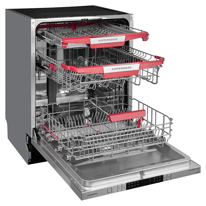 Встраиваемая посудомоечная машина Kuppersberg GIM 6078 предназначена для гигиенической обработки и последующей сушки различной посуды на предприятиях общественного питания, в гостиничных комплексах и домашних условиях. Модель оснащена камерой с откидной дверью, 3 разбрызгивателями, дозаторами моющих и ополаскивающих средств, устройством умягчения воды, кабелем питания с вилкой, расположенной на верхнем торце двери панелью управления с нажимными функциональными клавишами, светодиодными индикаторами и цифровым дисплеем с белой подсветкой индикации. Внутренняя облицовка камеры и двери выполнена из высококачественной нержавеющей стали, верхний торец двери – из нержавеющей стали с сатинированной серебристой поверхностью.