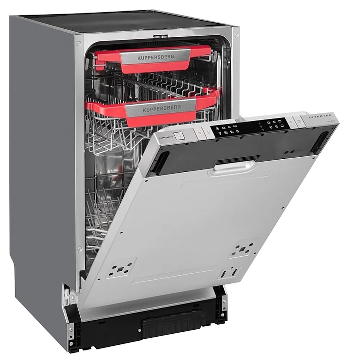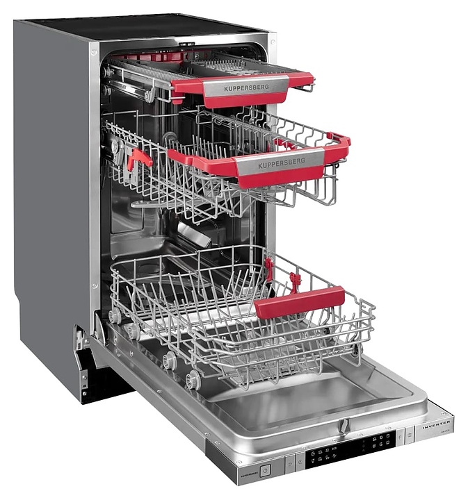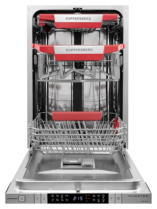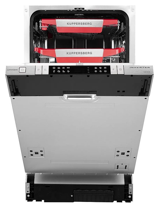 Встраиваемая посудомоечная машина Kuppersberg GIM 4578 предназначена для гигиенической обработки и последующей сушки различной посуды на предприятиях общественного питания, в гостиничных комплексах и домашних условиях. Модель оснащена камерой с откидной дверью, 3 разбрызгивателями, дозаторами моющих и ополаскивающих средств, устройством умягчения воды, кабелем питания с вилкой, расположенной на верхнем торце двери панелью управления с нажимными функциональными клавишами, светодиодными индикаторами и цифровым дисплеем с белой подсветкой индикации. Внутренняя облицовка камеры и двери выполнена из высококачественной нержавеющей стали, верхний торец двери – из нержавеющей стали с сатинированной серебристой поверхностью.