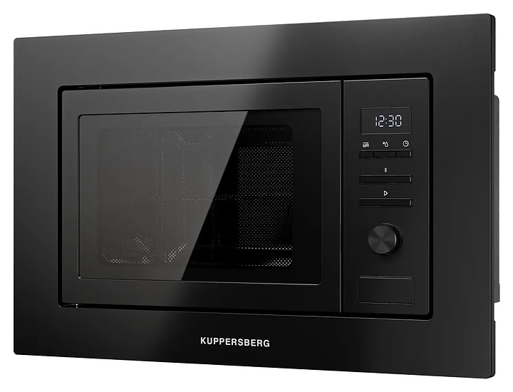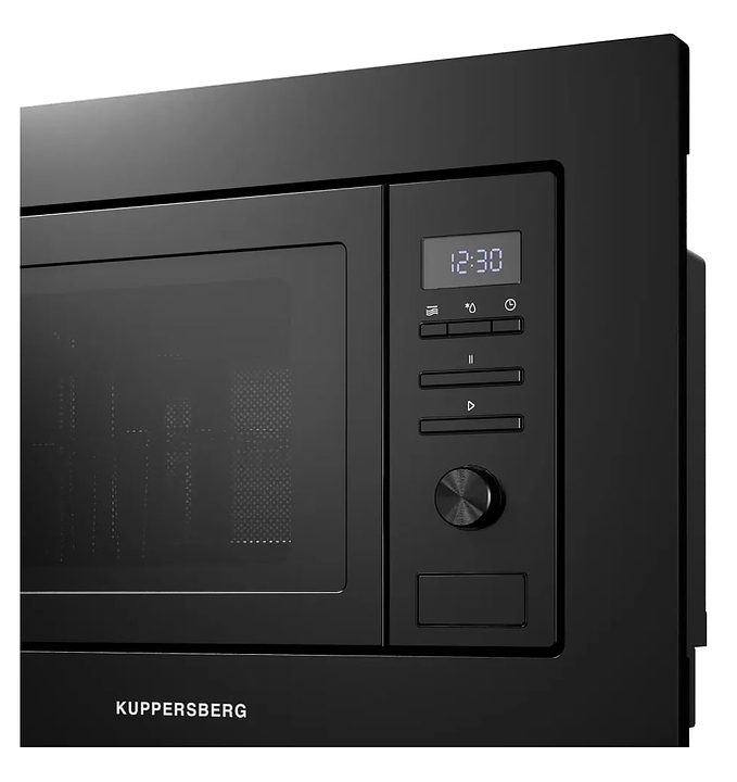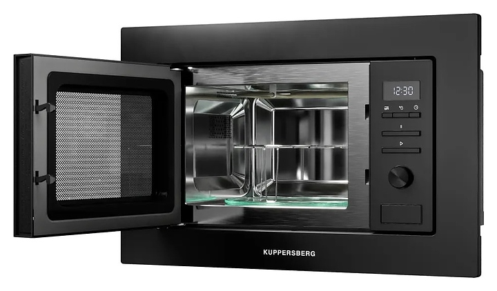 Встраиваемая микроволновая печь Kuppersberg HMW 621 B предназначена для приготовления пищи, подогрева готовых блюд и ингредиентов, а также размораживания полуфабрикатов в домашних условиях. Модель оснащена магнетроном, камерой с верхним тэновым грилем, левосторонней распашной дверью со смотровым окном, кабелем питания с вилкой, расположенной в правой части фронта электромеханической панелью управления с утапливаемым поворотным переключателем, нажимными функциональными клавишами и светодиодным цифровым дисплеем с белой подсветкой индикации. Корпус выполнен из стали, фронтальные панели с матовым покрытием эмалью черного цвета, фасад двери с частичным остеклением без винтового крепежа с дымчатой тонировкой, внутренняя облицовка камеры – из нержавеющей стали, фурнитура с поверхностью черного цвета, тарелка – из ударопрочного стекла. Комплектация: