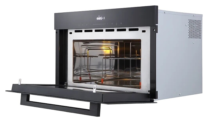 Встраиваемая микроволновая печь Kuppersberg HMW 634 B предназначена для приготовления пищи, подогрева готовых блюд и ингредиентов, а также размораживания полуфабрикатов на предприятиях общественного питания и в домашних условиях. Модель оснащена магнетроном, камерой с откидной дверью со смотровым окном и уплощенной горизонтальной рукояткой, верхним тэновым грилем, кабелем питания с вилкой, расположенной в верхней части фасада электронной панелью управления с сенсорными функциональными клавишами и светодиодным цифровым дисплеем с белой подсветкой индикации. Корпус выполнен из высококачественной стали, фасад с полным остеклением без винтового крепежа термостойким стеклом с черной полупрозрачной тонировкой, рукоятка – из металла с матовой черной поверхностью, внутренняя облицовка камеры – из нержавеющей стали, тарелка – из ударопрочного стекла. Комплектация: