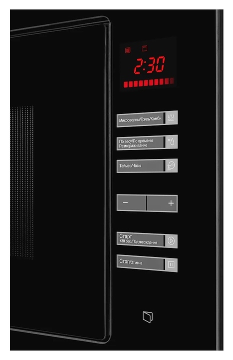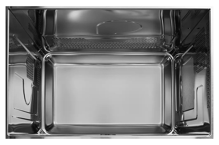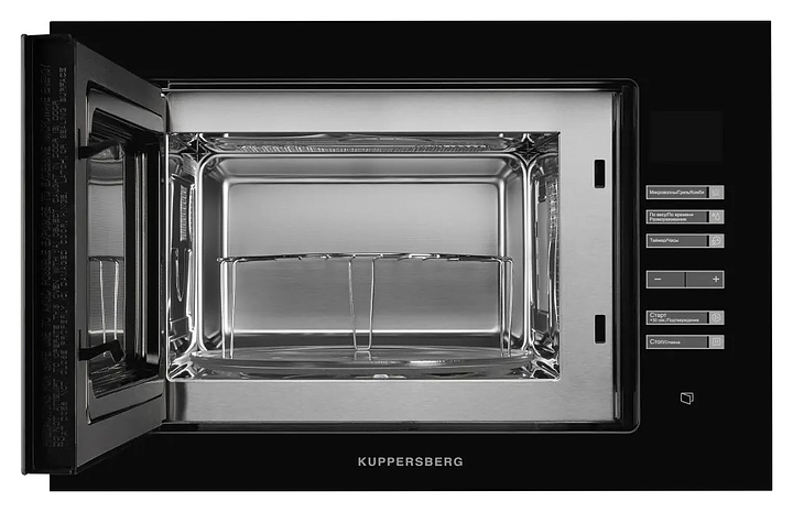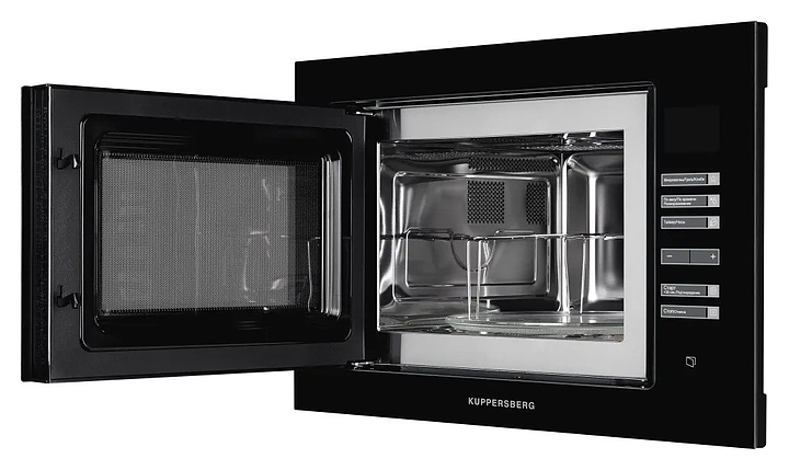 Встраиваемая микроволновая печь Kuppersberg HMW 645 B предназначена для приготовления пищи, подогрева готовых блюд и ингредиентов, а также размораживания полуфабрикатов в домашних условиях. Модель оснащена магнетроном, камерой с кварцевым грилем, левосторонней распашной дверью со смотровым окном, кабелем питания с вилкой, расположенной в правой части фронта электронной панелью управления с сенсорными функциональными клавишами и светодиодным цифровым дисплеем с красной подсветкой индикации. Корпус выполнен из стали, фронтальные панели черного цвета с полным остеклением без винтового крепежа, внутренняя облицовка камеры – из нержавеющей стали, тарелка – из ударопрочного стекла. Комплектация: