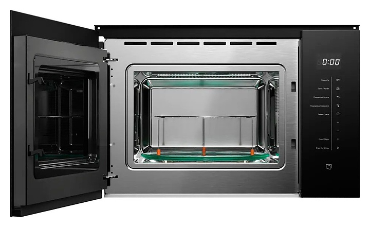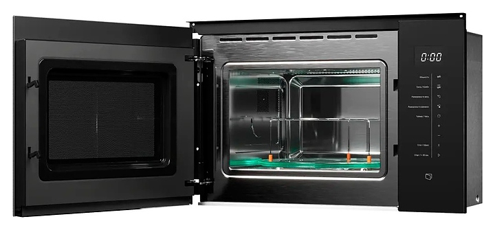 Встраиваемая микроволновая печь Kuppersberg HMW 651 B предназначена для приготовления пищи, подогрева готовых блюд и ингредиентов, а также размораживания полуфабрикатов в домашних условиях. Модель оснащена магнетроном, кварцевым грилем, камерой с левосторонней распашной дверью со смотровым окном, кабелем питания с вилкой, расположенной в правой части фронта электронной панелью управления с сенсорными функциональными клавишами и светодиодным цифровым дисплеем с белой подсветкой индикации. Корпус выполнен из стали, фронтальные панели с покрытием черного цвета и полным остеклением без винтового крепежа, внутренняя облицовка камеры – из высококачественной нержавеющей стали, тарелка – из ударопрочного стекла. Комплектация:
