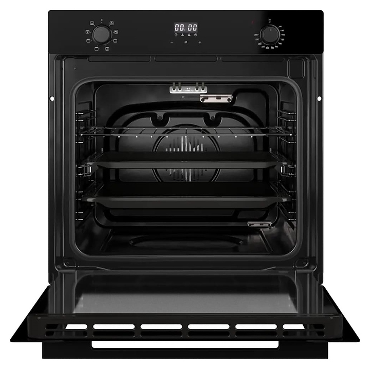 Встраиваемый электрический духовой шкаф Kuppersberg HO 620 B предназначен для приготовления большого ассортимента блюд в домашних условиях. Модель оснащена камерой с расположенным в задней стенке вентилятором, верхним и нижним нагревательными элементами, верхним грилем, 2 боковыми стойками с 5 уровнями направляющих для противней, откидной дверью со смотровым окном и уплощенной горизонтальной рукояткой, расположенной в верхней части фронта электромеханической панелью управления с 2 цилиндрическими поворотными переключателями, сенсорными функциональными клавишами и светодиодным цифровым дисплеем с белой подсветкой индикации. Корпус выполнен из высококачественной стали, фронтальные панели с черным покрытием и полным остеклением без винтового крепежа, решетка, направляющие и боковые стойки – из металла с хромированным покрытием, противень – из металла с эмалированным покрытием, фурнитура с матовой черной поверхностью.
