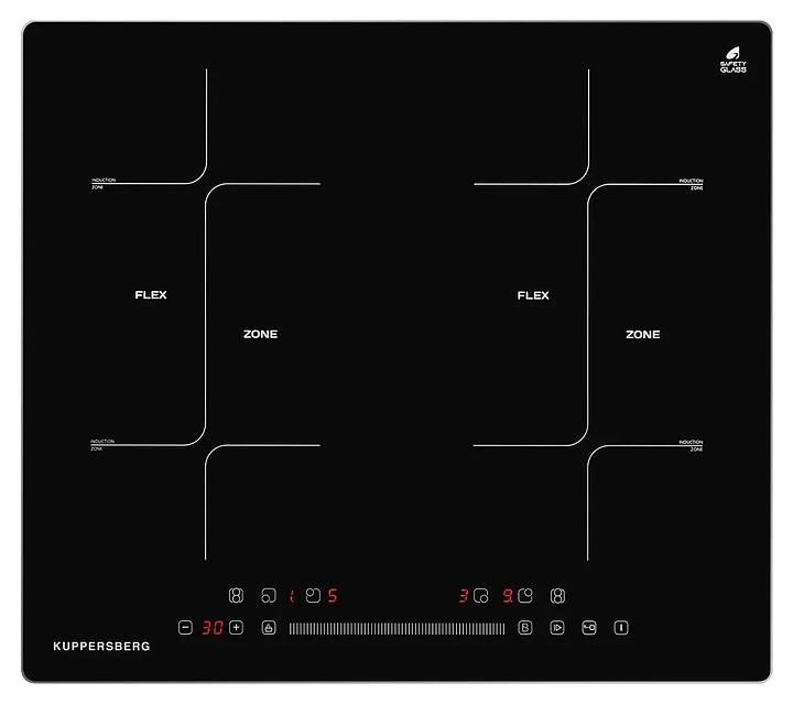 Индукционная варочная панель Kuppersberg ICS 622 R предназначена для приготовления большого ассортимента блюд в домашних условиях. Принцип работы основан на непосредственном нагреве металлической посуды создаваемыми высокочастотным магнитным полем индуцированными вихревыми токами. Модель оснащена 4 независимыми варочными зонами, кабелем питания без вилки, расположенной в центре фронта электронной панелью управления с сенсорными функциональными клавишами и 5 цифровыми светодиодными дисплеями с красной подсветкой индикации. Рабочая поверхность выполнена из высококачественной стеклокерамики KANGER и декорирована металлической рамкой серебристого оттенка по периметру.