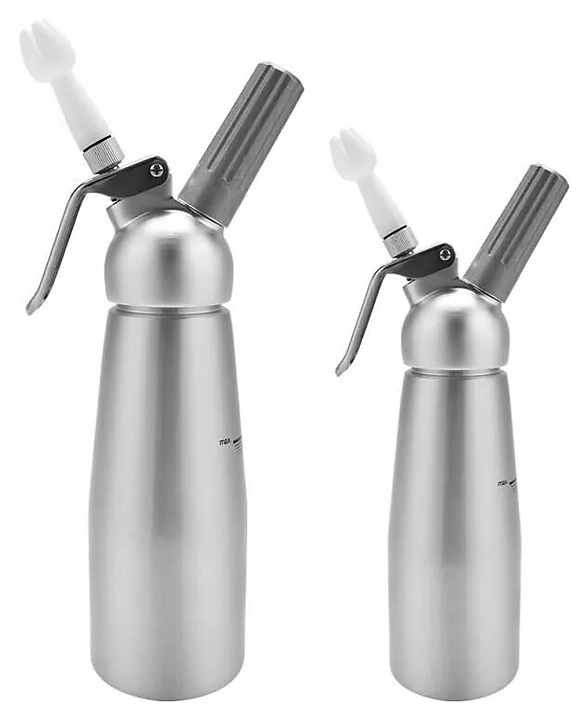 Сифон для взбивания сливок Restopit рп480 предназначен для приготовления разнообразных легких десертов: кремов, муссов, суфле, а также пюре и соусов на предприятиях общественного питания, торговли и в домашних условиях. Модель состоит из колбы для ингридиентов и завинчивающейся головной части с патроном для баллончика со сжиженным газом, входным и выходным клапанами и удобной рукояткой. Принцип работы: сжиженный газ из баллончика под давлением поступает в колбу, расширяется и насыщает содержимое, в результате продукт увеличивается в объеме и приобретает пенистую структуру. Колба и корпус головной части с поверхностью серебристого оттенка. В комплект поставки входят 3 насадки и ершик. Дополнительные характеристики: