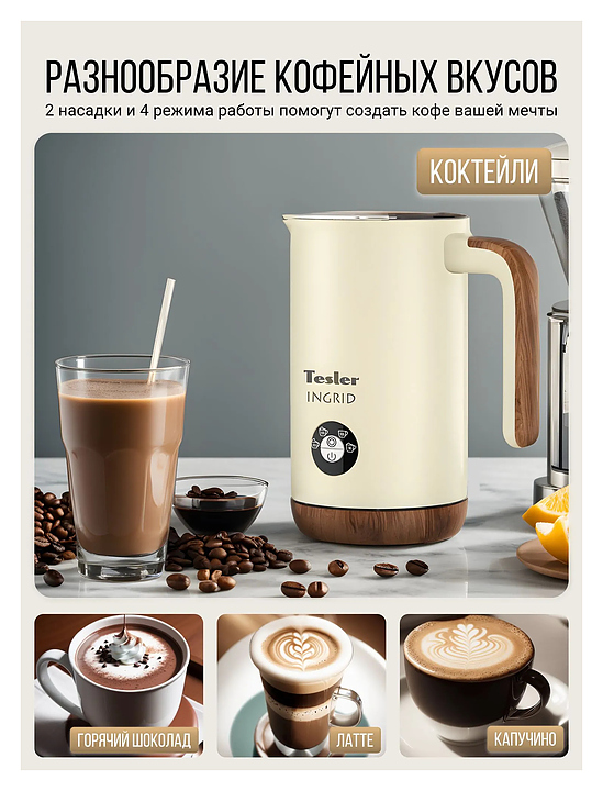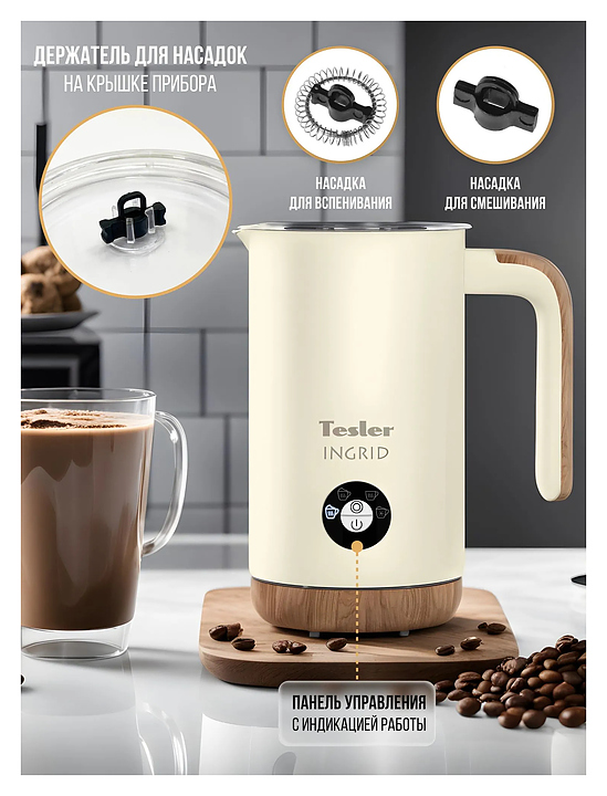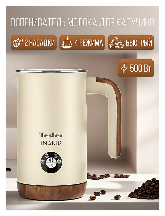 Вспениватель молока TESLER INGRID MF-240 BEIGE 500 Вт 240 мл бежевый