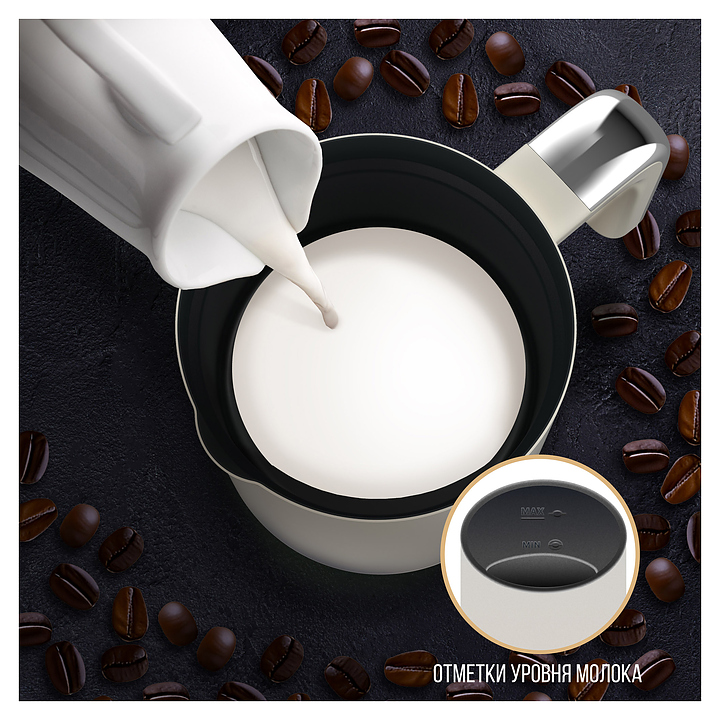 • Объем ёмкости капучинатора составляет 240 мл, что идеально подходит для создания молочной пены на одну или две порции кофе