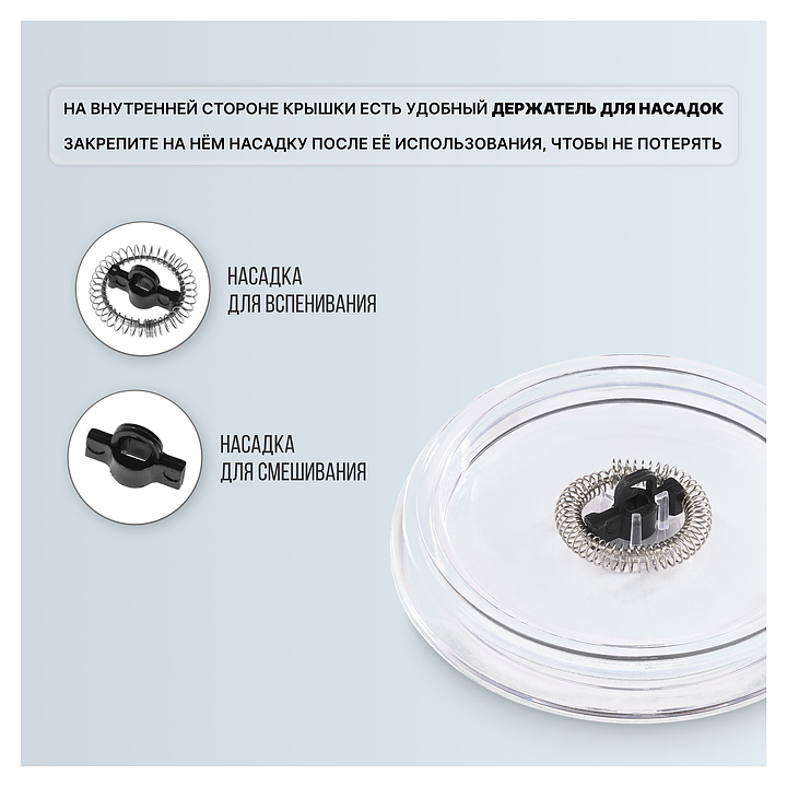 • Насадка для смешивания пригодится не только для перемешивания молока во время подогрева, но и чтобы приготовить горячий шоколад или соус