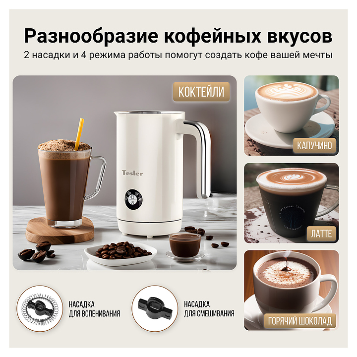 Вспениватель молока TESLER Margherita MF-260 BEIGE 500 Вт 240 мл бежевый
