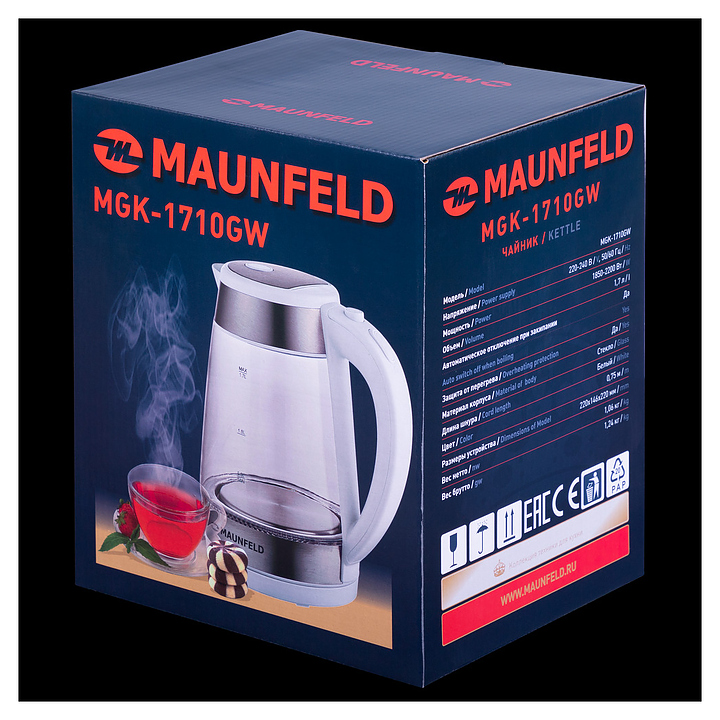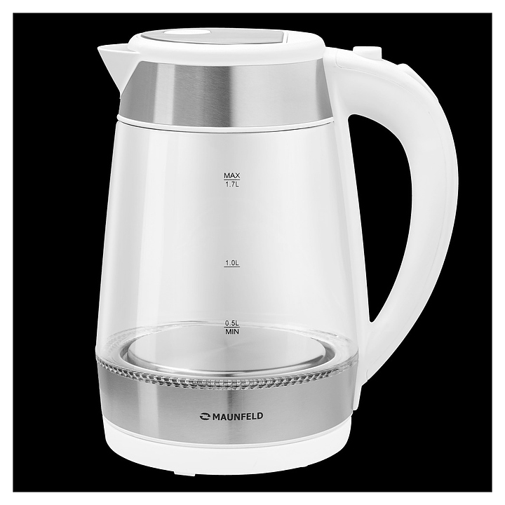 Чайник Maunfeld MGK1710GW используется на предприятиях общественного питания, торговли, в барах, ресторанах, специализированных магазинах, частных домах или квартирах. В комплекте: фильтр и вращающаяся подставка с отсеком для сетевого провода. Корпус представляет собой идеальную комбинацию металлического основания и колбы из жаропрочного боросиликатного стекла, которая легко моется. Особенности: