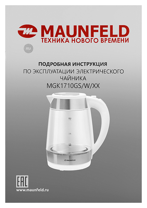 Чайник Maunfeld MGK1710GW 1.7 л 2200 Вт белый, прозрачный