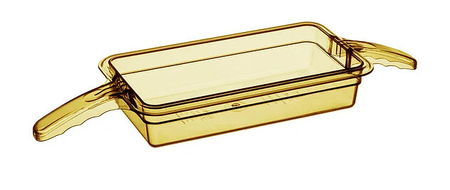 Гастроемкость Cambro H-PAN GN1/3х65 предназначена для приготовления различных блюд на пару и выпечки хлебобулочных и кондитерских изделий в пароконвектоматах и конвекционных печах, а также используется для бланширования, процеживания и сушки на предприятиях общественного питания и торговли. Модель оснащена стандартным фланцем шириной 1,27 см и двумя ручками. Изделие изготовлено из высококачественного поликарбоната, соответствующего стандартам безопасности для пищевой промышленности, обладает высокой прочностью, легкостью, безопасностью, универсальностью и эстетичным видом. Особенности: