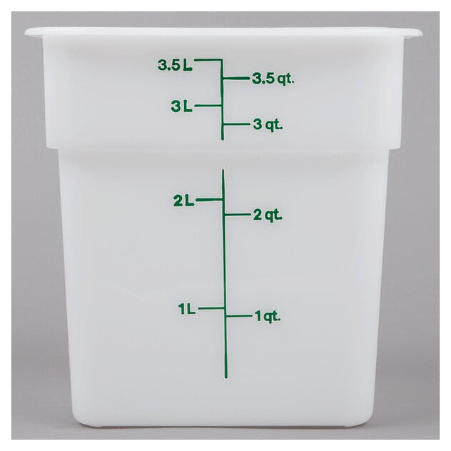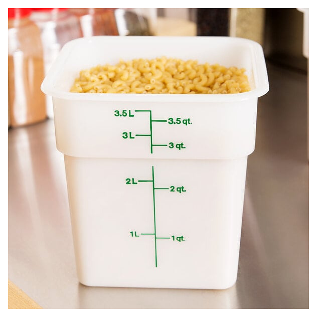 Контейнер для хранения продуктов Cambro 4SFSP-148 предназначен для использования в качестве кухонных принадлежностей для транспортировки и хранения продуктов питания на предприятиях общественного питания и торговли, барах, ресторанах, отелях, гостиницах и в домашних условиях. Модель оснащена ручками и градуировкой. Изделие изготовлено из высококачественного ролиэтилена, соответствующего стандартам безопасности для пищевой промышленности, обладает высокой прочностью, легкостью, безопасностью, универсальностью и эстетичным видом. Особенности: