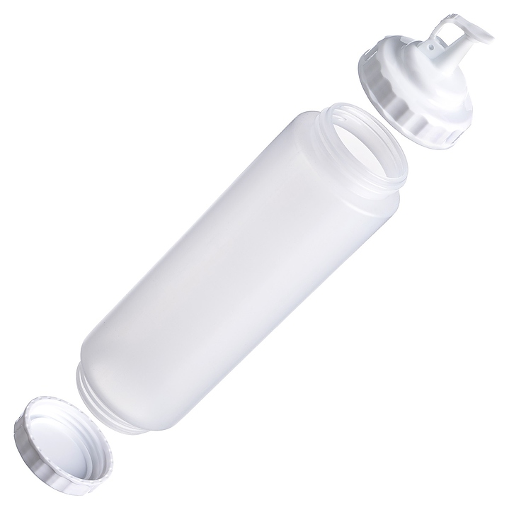 Диспенсер Gastroplast 79698 используется для дозированной подачи соусов на предприятиях общественного питания и торговли. Модель состоит из емкости цилиндрической формы и 2 завинчивающихся крышек, дозирующий носик оснащен откидным защитным колпачком. Емкость и крышки выполнены из безопасного для пищевой продукции пластика, крышки белого цвета. Особенности: