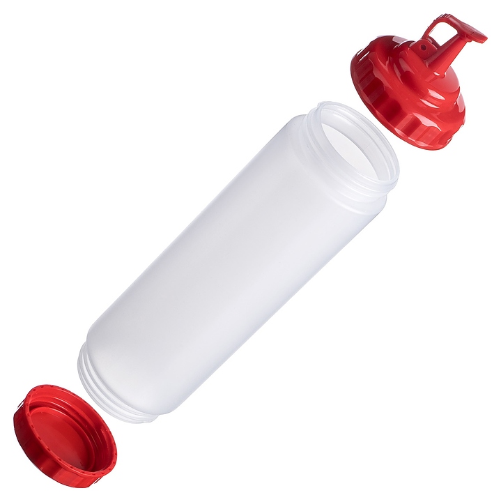 Диспенсер Gastroplast 79691 используется для дозированной подачи соусов на предприятиях общественного питания и торговли. Модель состоит из емкости цилиндрической формы и 2 завинчивающихся крышек, дозирующий носик оснащен откидным защитным колпачком. Емкость и крышки выполнены из безопасного для пищевой продукции пластика, крышки красного цвета.