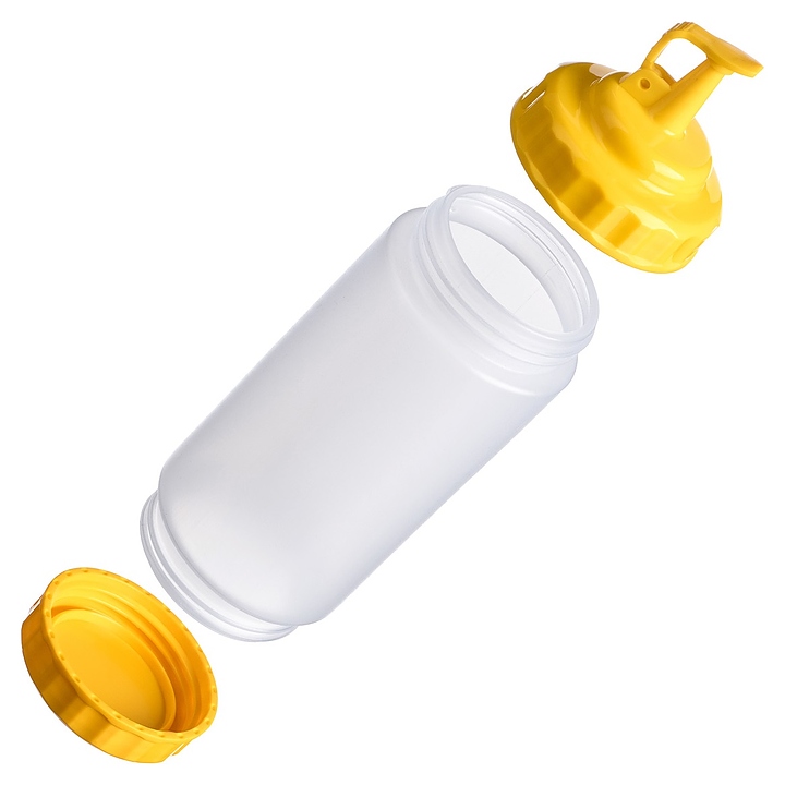 Диспенсер для соуса Gastroplast 79689 500 мл d=7 см h=20 см (пластик) прозрачный c 2 желтыми крышками