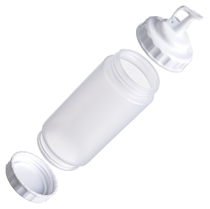 Диспенсер Gastroplast 79688 используется для дозированной подачи соусов на предприятиях общественного питания и торговли. Модель состоит из емкости цилиндрической формы и 2 завинчивающихся крышек, дозирующий носик оснащен откидным защитным колпачком. Емкость и крышки выполнены из безопасного для пищевой продукции пластика, крышки белого цвета. Особенности: