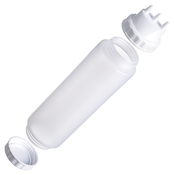 Диспенсер для соуса Gastroplast 79683 1000 мл d=7,5 см h=29 см (пластик) прозрачный c 2 белыми крышками и 3 носиками