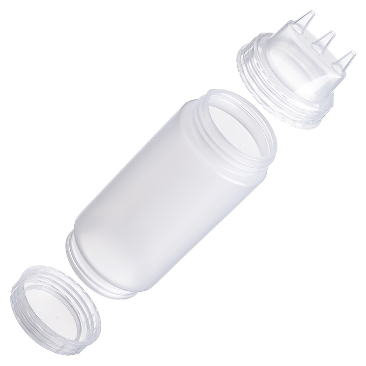 Диспенсер для соуса Gastroplast 79670 500 мл d=7 см h=20 см (пластик) прозрачный c 2 прозрачными крышками и 3 носиками