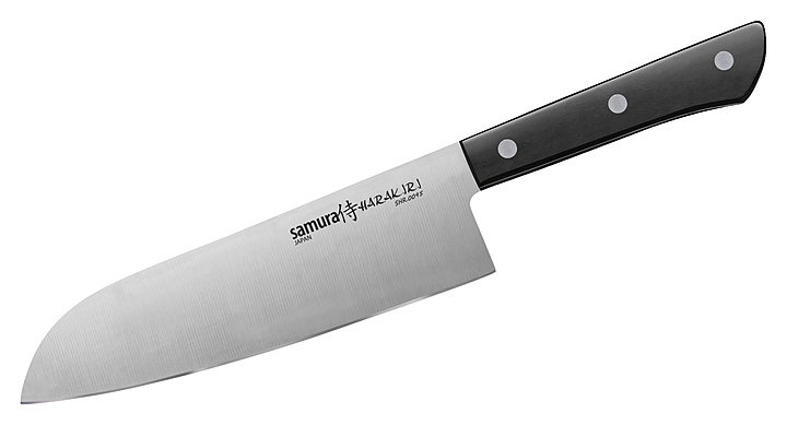 Японский кухонный нож Samura Harakiri SHR-0095B/K предназначен для нарезки различных продуктов на предприятиях общественного питания и торговли, в частных домах и квартирах. Шеф-нож имеет широкие функциональные возможности. Лезвие выполнено из коррозионно-стойкой однослойной стали AUS-8, ручка - из ABS-пластика. Особенности: