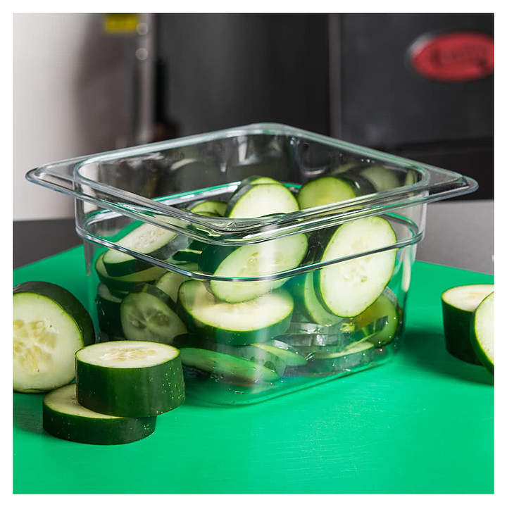 Гастроемкость Cambro 64CW 135 GN 1/6-100 используется на предприятиях общественного питания и торговли для приготовления широкого спектра блюд, демонстрации готовых блюд на линиях раздачи, заморозки, охлаждения и хранения продуктов в холодильных и морозильных шкафах, а также для транспортировки продуктов и готовых блюд. Изделие выполнено из высокопрочного поликарбоната Camwear®. Особенности: