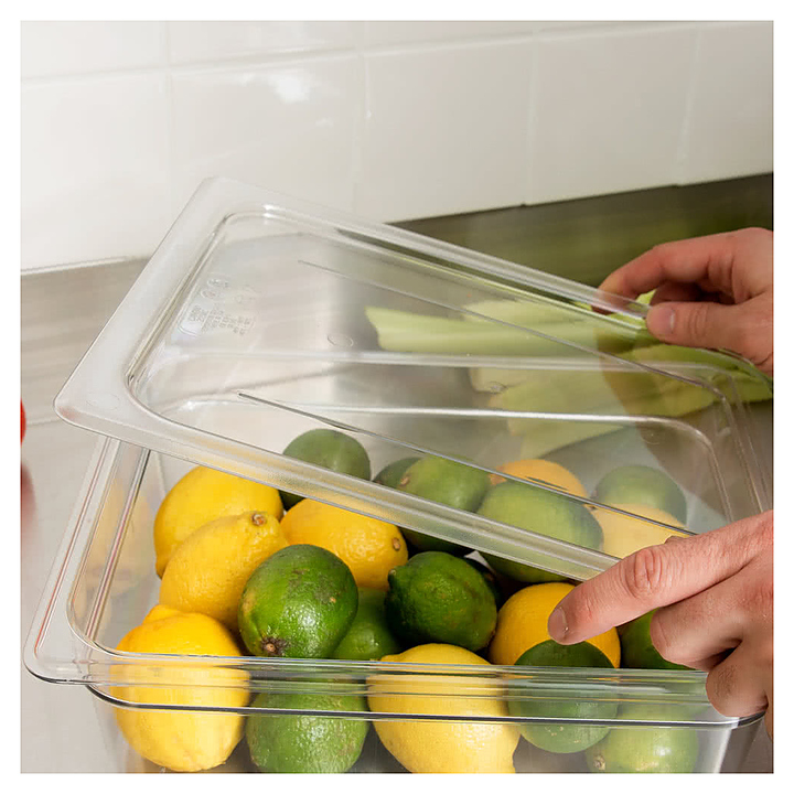 Крышка для гастроемкости Cambro 20CWC 135 GN 1/2 предназначена для совместного использования с гастроемкостями формата GN 1/2. Изделие выполнено из высокопрочного поликарбоната Camwear®. Особенности: