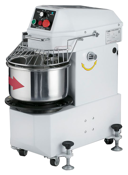 Спиральный тестомес Hurakan HKN-10CN предназначен для автоматизированного смешивания ингредиентов теста (дрожжей, муки, воды, сахара, масла и соли) в однородную массу, которая затем насыщается воздухом для создания благоприятных условий брожения. Используется для приготовления хлеба, выпечки, прочих мучных изделий, а также кондитерских масс на предприятиях общественного питания и торговли. Модель оснащена зубчатой передачей, что значительно снижает ее шум при работе. Корпус выполнен из крашеного металла, дежа и насадки - из нержавеющей стали. Аппарат не предназначен для замешивания «крутых» видов теста, а именно теста с содержанием воды менее 45-50% от объема муки. Аппарат не предназначен для обработки замороженных продуктов, продуктов, содержащие твердые элементы (кости), а также непищевых продуктов. Оборудование предназначено для работы только в повторно-кратковременном режиме с длительностью рабочего цикла не более 30 мин. Это означает, что после каждых 30 мин работы необходима технологическая пауза продолжительностью не менее 20 мин. Дополнительные характеристики:
